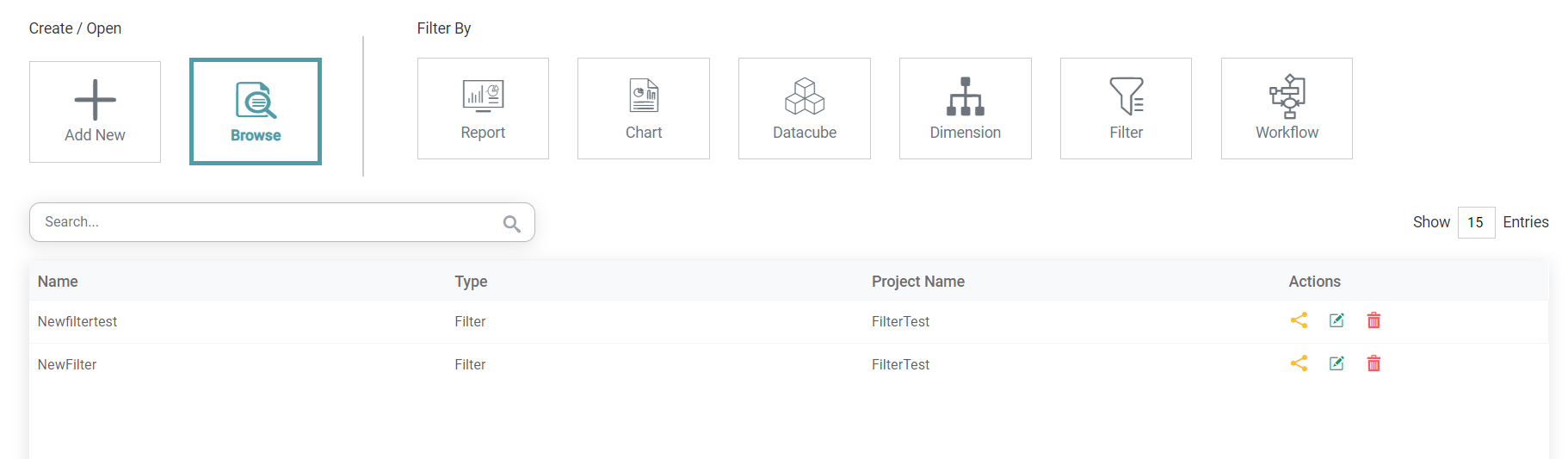 Step 3: Reports/charts/dimension/filter list will appear. Click on edit icon. (Refer to the image below).